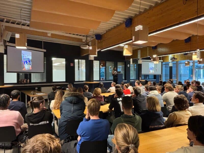 Technologische innovatie stond centraal in het tweede deel van het gastcollege. Nina lichtte toe hoe artificiële intelligentie (AI) kan bijdragen aan slimmere processen, nauwkeurigere analyses en betere besluitvorming. Van projectplanning tot materiaalbeheer: AI zal volgens haar een sleutelrol spelen in het toekomstgericht bouwen.